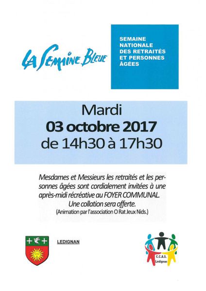 Le Centre Communal d'action Sociale et la municipalité de LEDIGNAN invitent les retraités et les personnes agées de LEDIGNAN à une après-midi récérative